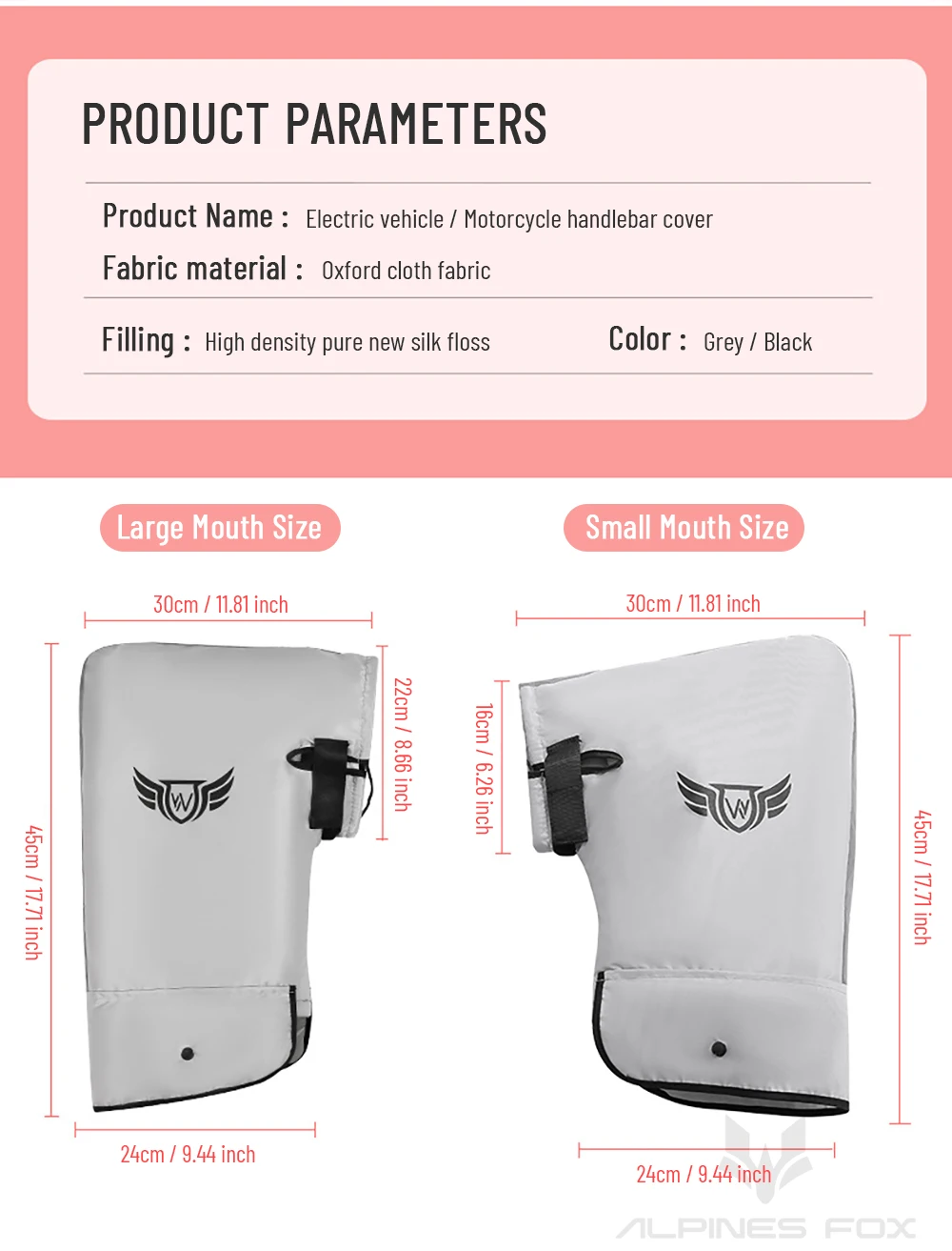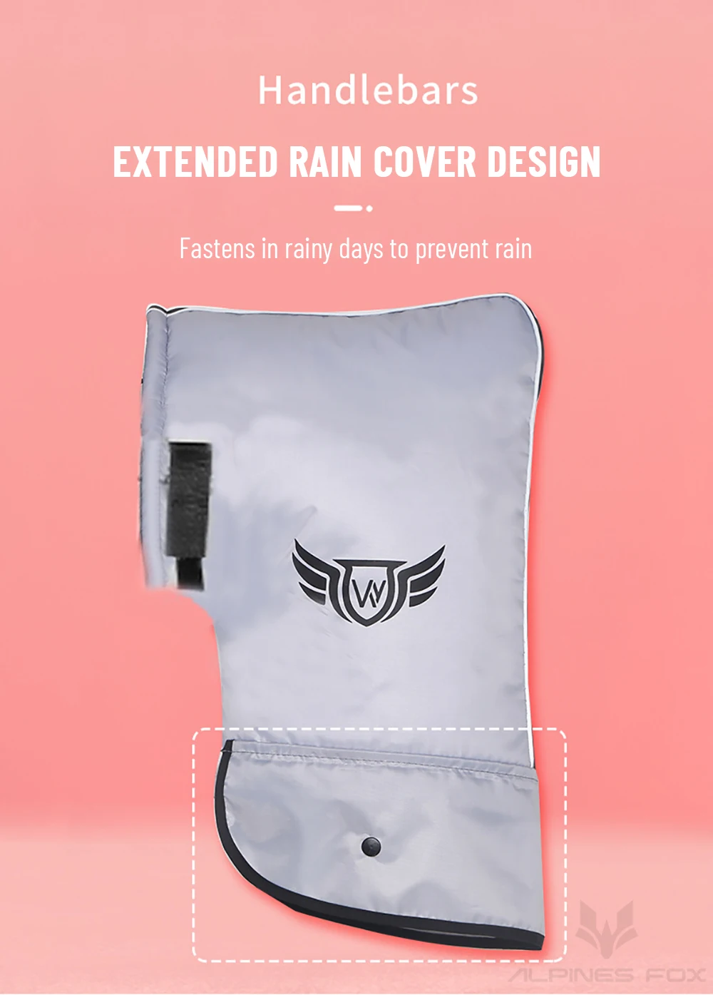 तपाईंको हात र ह्यान्डलबारलाई पूर्ण रूपमा ढाक्छ, जसले हावा, वर्षा र हिउँबाट पूरै सुरक्षा प्रदान गर्छ।
