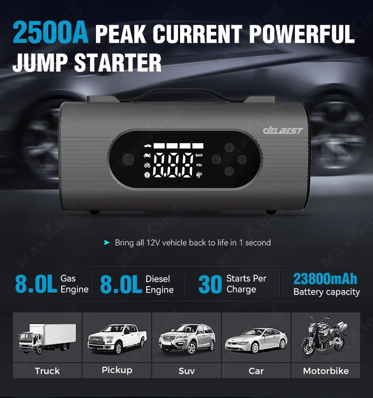 🔋🚗 डिजिटल एयर कम्प्रेसरसहितको Peak जम्प स्टार्टर