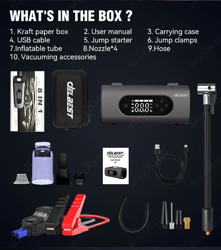 एकै उपकरणमा जम्प स्टार्टर + एयर कम्प्रेसर + पावर बैंक—समय, पैसा र ठाउँ सबै बचत!