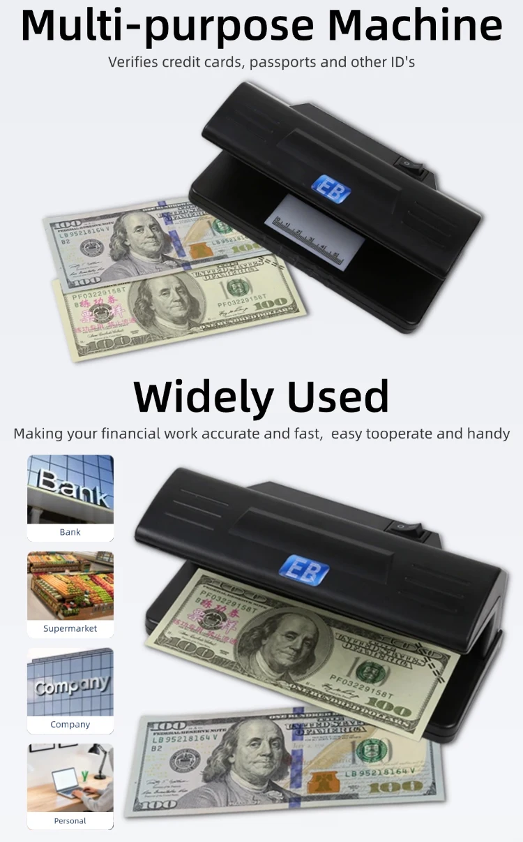 नक्कली नोट पहिचान गर्ने उपकरण (नगद, क्रेडिट कार्ड र आईडीका लागि) – पोर्टेबल UV लाइट मनी डिटेक्टर मेसिन